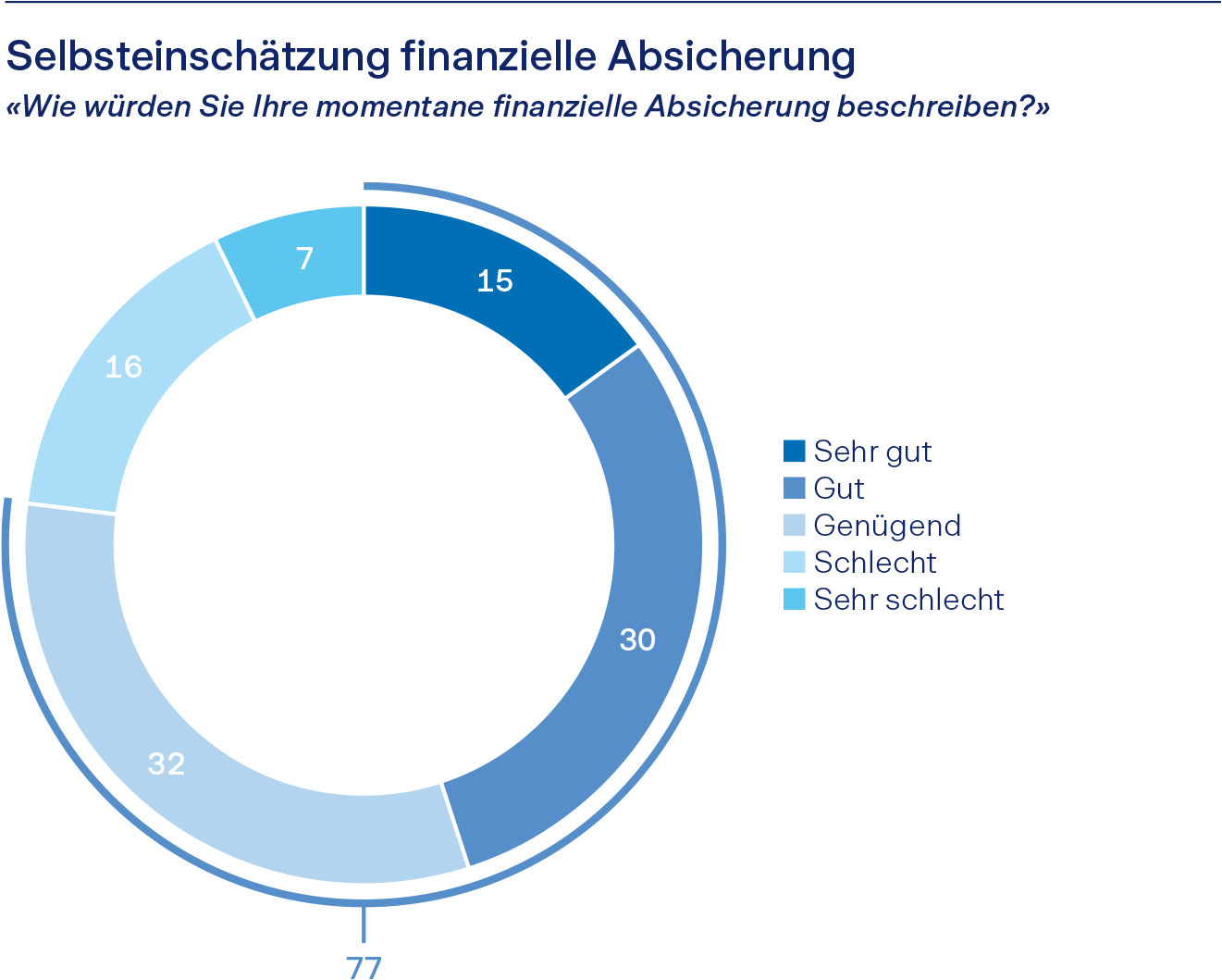 Gleichwohl ist dieses Gefühl der Sicherheit zerbrechlich: 46% der Befragten nennen «Krankheit und Unfall» als grösste Bedrohung für ihre finanzielle Sicherheit, noch vor Krankenkassen-Prämien, Arbeitslosigkeit oder steigenden Mieten oder Hypothekarzinsen. Fast die Hälfte sorgt sich also um die finanziellen Folgen von Krankheit und Unfall. Mögliche Ursachen sind ein hoher Selbstbehalt in der Krankenkasse oder die Angst vor Einkommensverlusten durch Erwerbsunfähigkeit.