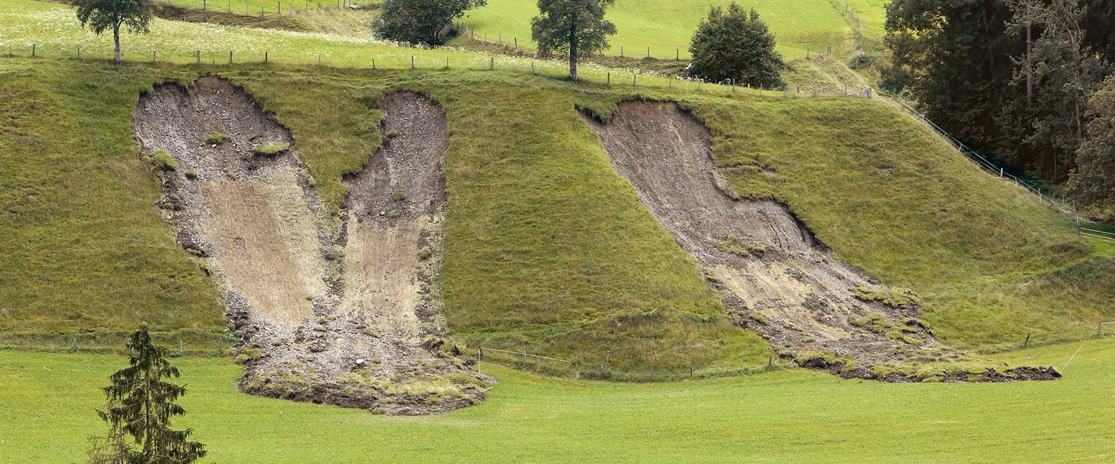 Une distinction est faite entre un glissement permanent ou spontané et une coulée de boue. Une coulée de boue, qui se produit lorsqu’il pleut beaucoup, est un mélange très liquide d’eau, de terre et de débris qui glisse sous forme d’avalanche de boue à la surface des versants. La fonte des neiges peut favoriser le déclenchement de ce processus. En revanche, les glissements de terrain se déclenchent avec peu d’eau, soit de façon spontanée «en bloc» ou permanente, la plupart du temps de manière étendue, uniformément et sur une longue période. Ils peuvent se produire sur une pente d’une déclivité de 10 degrés déjà.