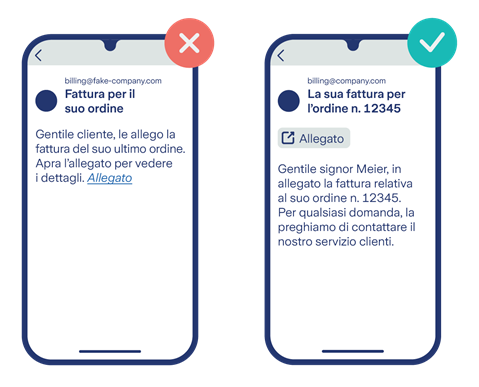 - Anomalie nel contenuto, ad esempio errori di ortografia, appellativo generico senza nome («Gentile cliente») o richiesta di dati personali.