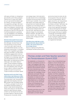 Ein Gipfeltreffen von führenden Ex- pertinnen und Experten aus der Vor- sorge- und Anlagewelt: Dies ist die kürzestmögliche Beschreibung des jährlichen Pensionskassen-Summits. Die Zurich Versicherung und ihre Tochterfirma Zurich Invest AG (ZIAG) organisieren den zweitägigen Anlass gemeinsam und bringen Stiftungs- räte, Geschäftsführer und Anlage- spezialisten mit bekannten Wirt- schaftsgrössen wie Peter Spuhler, Mehrheitsaktionär von Stadler Rail, oder Thomas Jordan, ehemaliger Direktor der Schweizerischen Nationalbank und aktueller Zurich- Verwaltungsrat, zusammen.