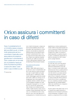 un immobile, spesso vengono alla luce difetti occulti. Un tema molto spiacevole per le e i committenti. Grazie alla nuova assicurazione di protezione giuridica per il committente di Orion, questo per voi non sarà più un problema: l’assicura zione di protezione giuridica vi aiuta a far valere i vostri diritti in caso di difetti occulti.