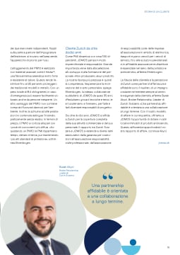a Zurich per la copertura completa della sua attività commerciale e del suo personale. Il rapporto tra Zurich Sviz zera e JOMOS si estende a diversi rami assicurativi: dalla garanzia per costru zioni all’assicurazione responsabilità civile professionale, dall’assicurazione