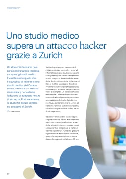 è successo di recente a uno studio medico del Canton Berna, vittima di un attacco ransomware nonostante l’adozione di adeguate misure di sicurezza. Fortunatamente, lo studio ha potuto contare sul sostegno di Zurich.